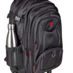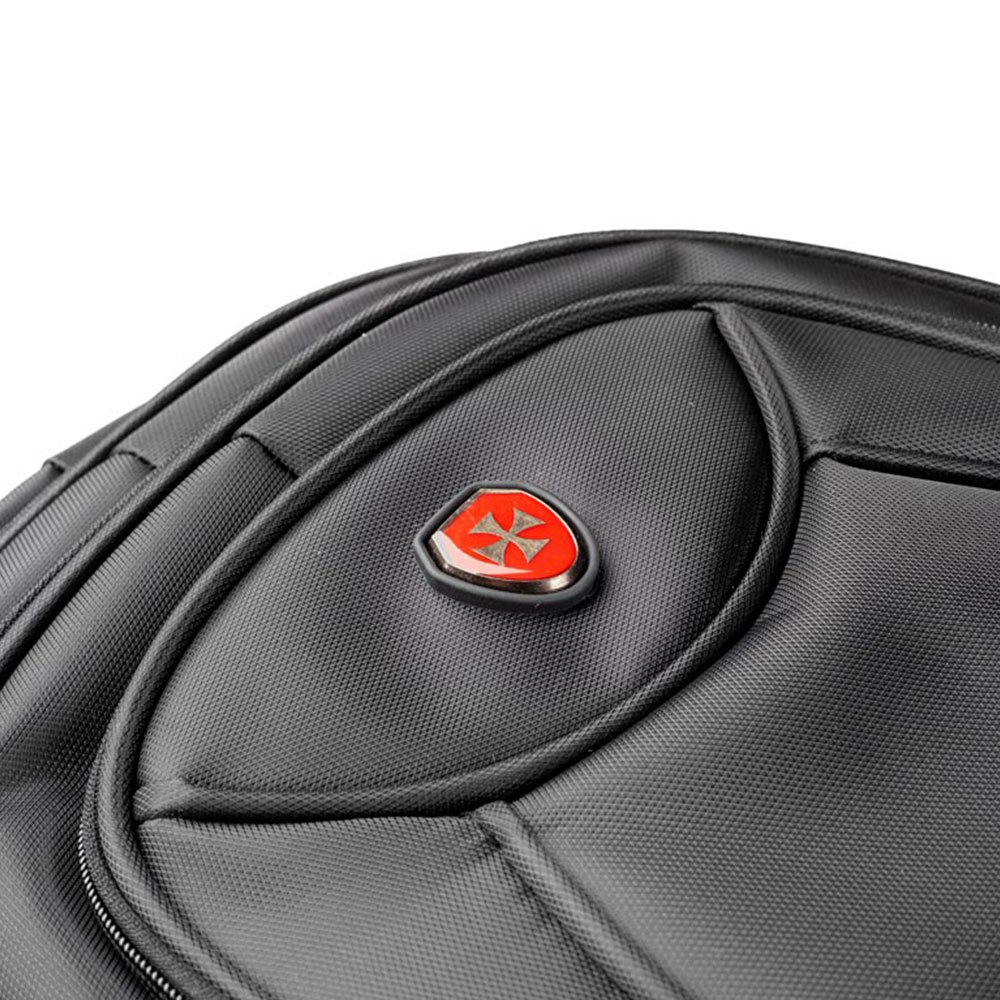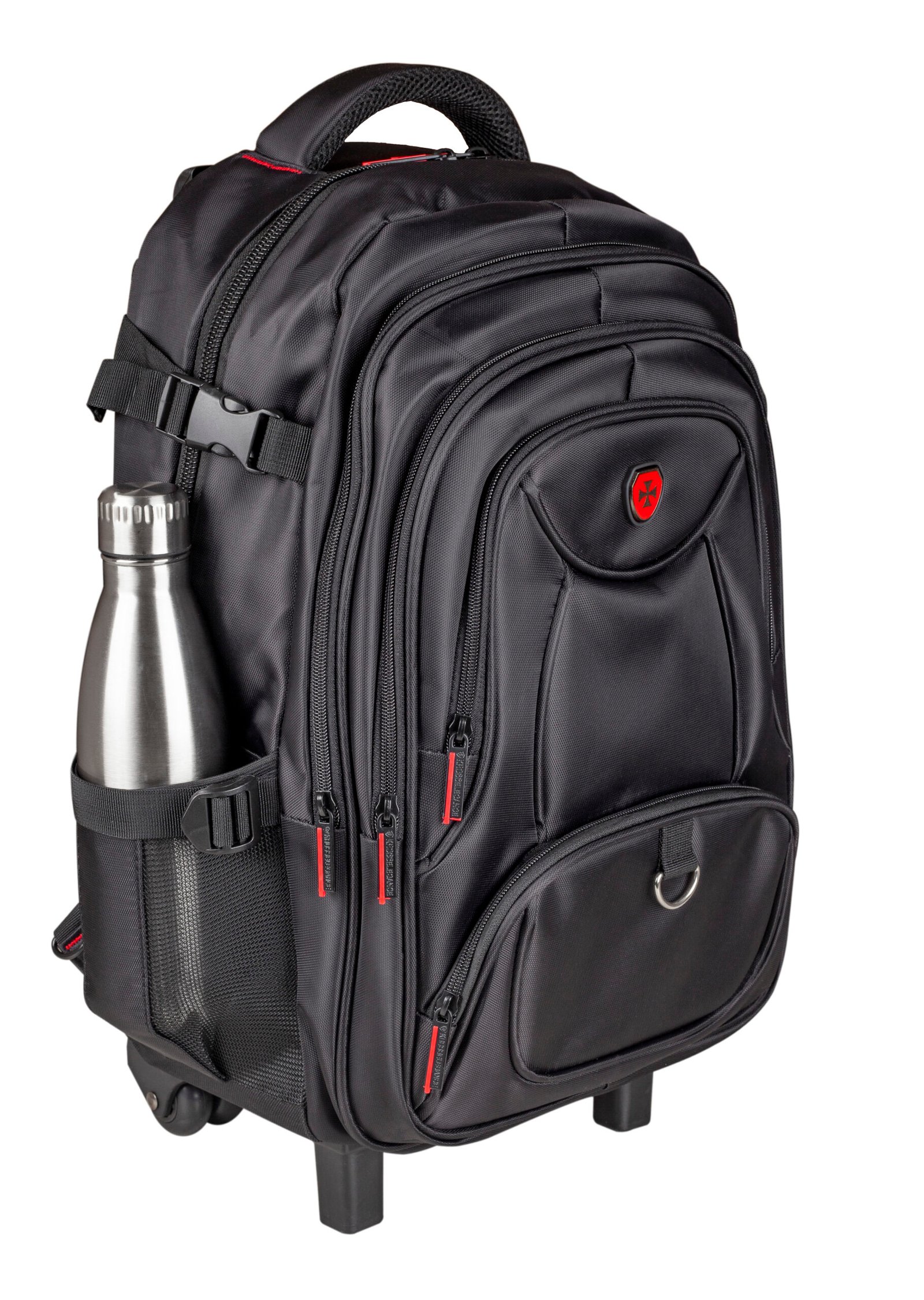A mochila possui alças anatômicas, puxador com 2 níveis de ajustes e um protetor de rodas para garantir segurança e higiene quando a mochila tiver nas costas. A mochila possui Bolsos de acesso rápido para garrafa e guarda chuva.